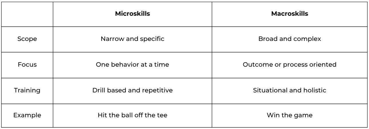 As a point of comparison, look at this list of differences between micro and macroskills: